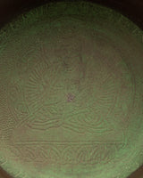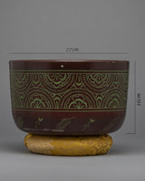 The Singing Bowl is a beautiful work of art with a C#3 frequency, making it perfect for meditation and relaxation practices. The bowl has been expertly crafted to produce a rich and resonant sound that is sure to soothe and calm the mind. The outside of the bowl boasts different intricate designs that have been carefully crafted to enhance its beauty and elegance. These designs are not only visually appealing but also help to enhance the sound produced when played. A deity has been crafted inside the bowl, adding to its overall spiritual and symbolic significance. The deity can serve as a focal point for meditation and help to deepen the practice.