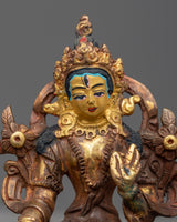 The Sita Tara Statue is a divine work of art that embodies spiritual grace and reverence. Crafted with meticulous care, this statue features a copper body adorned with resplendent 24k gold gilding, paying homage to Sita Tara, a revered figure in the Buddhist tradition.