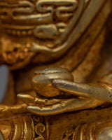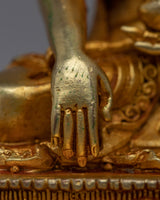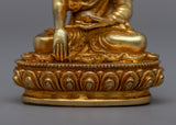 The Shakyamuni Buddha is a machine-made masterpiece with a copper body and 24k gold plating that exudes elegance and grace. This Sitting Buddha Statue will bring a sense of calm and serenity to any space in your home or office. Allow the intricate details of this statue to transport you to a state of peace and tranquillity. This Buddha statue, whether placed on a shelf or prominently displayed on a table, is sure to spark conversation. Don't miss out on the opportunity to bring a touch of spirituality into your life