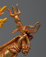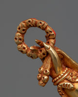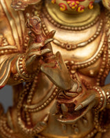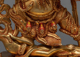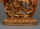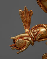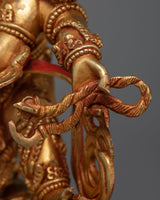Begin your spiritual journey with the Six-Armed Mahakala Sadhana, a Buddhist figure who represents power and protection. This masterpiece, embellished with the radiance of 24k gold and vivid acrylic paintings, complements the sturdy copper body flawlessly, giving it a stunning centerpiece in any setting. It is a striking monument to Nepal's rich crafting legacy, delivering both beauty and spiritual resonance.