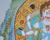 As a guardian(Dharmapala), Mahakala guards the teachings, the Dharma, particularly in relation to the Hevajra Tantra, the Vajra Panjara tantra, and the Paramasuka Chakrasamvara tantra. He typically serves advanced Buddhist practitioners, often known as tantric practitioners or adept, in their quest for enlightenment. This Mahakala thangka will be an ideal gift for practitioners!