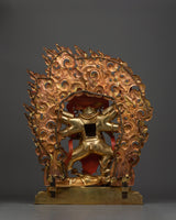 This statue represents Mahakala's energy of protection and spiritual guardianship, making it more than just a decorative item. Its powerful deity's intricate paintings and opulent gold gilding bring out every detail, giving it a commanding presence in any environment. This Mahakala statue is perfect for establishing a powerful and contemplative atmosphere, and it serves as a poignant reminder of the guardian's function in Buddhist practices and teachings.
