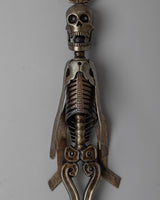 The Skeleton Decoration, made of iron, represents a stunning mix of creativity and symbolism. Handmade with great attention to detail, it represents the skeletal form with spooky precision, prompting reflection on the fleeting aspect of existence. The incorporation of a Hand Statue as a holder adds a utilitarian element to its visual appeal, allowing for a variety of display alternatives.