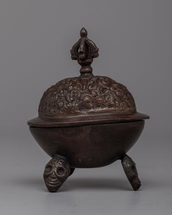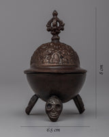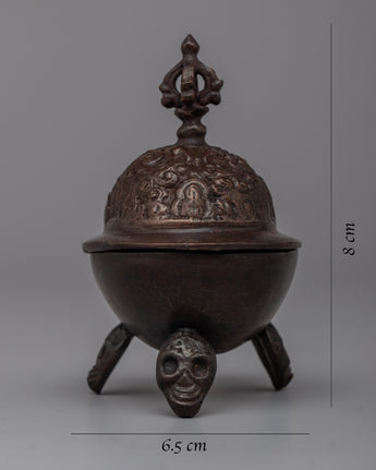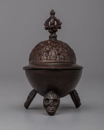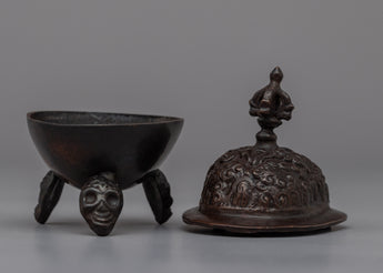 The Ritual Skull Cup Set is a unique and meticulously handcrafted set made from brass. The cups have been carefully oxidized to appear antique and weathered. The set includes multiple skull-shaped cups, each intricately designed with care. These cups are frequently used in spiritual and ritual practices to represent impermanence and the transitory nature of life. The Ritual Skull Cup Set's craftsmanship and unique design make it a captivating and meaningful addition to any sacred space or ritual ceremony.