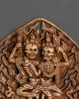 This buffalo bone skull deity sculpture is ideal for altar areas, tantric ceremonies, or as a statement piece in spiritual décor. It combines meticulous craftsmanship with rich symbolism. It is ideal for Tibetan artifact collectors and Vajrayana practitioners, providing both aesthetic value and spiritual depth. With keywords like skull deity sculpture, Chitipati wrathful guardian, and Tibetan bone ritual art, this sacred object is ideal for individuals looking for profound spiritual tools and symbolic decor.