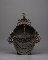 The Skull Mask Wall Hanging is perfect for collectors, art lovers, and spiritual practitioners because it is a stunning decorative piece as well as a potent symbol. This wall hanging inspires introspection and reverence whether it is placed in a meditation area, on a holy shrine, or as a classy accent in any setting. Its deep spiritual importance and aesthetic beauty enhance any context, making it a treasured addition to any collection or hallowed space. This wall hanging is more than just a pretty piece of art; it's a significant relic that represents fine craftsmanship and profound spiritual principles.