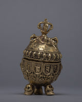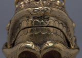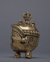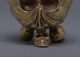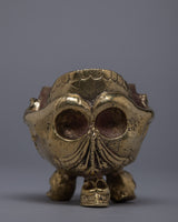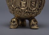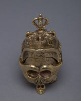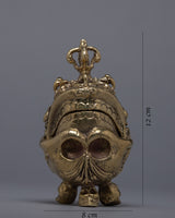 This Skull Zen Incense Burner is a handmade copper body. The vajra is crafted at the top as a handle to open the skull. The incense is placed on the top of the skull. The smoke filters come out through the mouth part and all the round part. The legs of the burner are made of the skull head. The mantra is crafted on the lower part of the burner to make it more auspicious.
