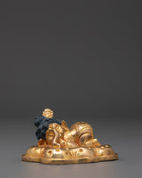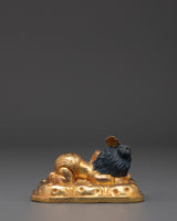 The Sleeping Ganesha Figurine is a serene and spiritually inspirational sculpture that can bring peace and tranquility into your house. This copper body Ganesha statue is expertly crafted and finished with a gold plating, giving a touch of elegance and divinity to your living space. Its small size, at only 6cm in height and 11cm in width, makes it an ideal ornamental addition for any area, whether exhibited on a mantel, bookshelf, or altar.