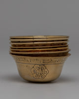 These offering bowls, made of high-quality brass, are long-lasting and have a lustrous finish that adds sophistication to any altar or sacred space. Their small size makes them ideal for holding offerings like water, flowers, or grains, representing generosity, purity, and devotion in Buddhist and spiritual traditions.
