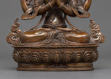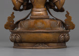 The small Chenrezig Statue crafted from an oxidized copper body is a classic depiction of the Bodhisattva of Compassion, Avalokiteshvara. It is the perfect addition to small altars, personal meditation areas, or as a thoughtful present for people on a spiritual path, standing 8.7"/22 cm tall and weighing 1.64 kg.