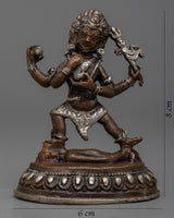 Mahakala's menacing characteristics are accentuated by the silver plating over the oxidized copper Body, which highlights his 4 arms—each of which is brandishing a symbolic weapon—and his angry visage. This statue, which provides protection and acts as a reminder of strength and endurance, is ideal for individuals looking for a little yet potent addition to their spiritual practice area.
