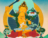Small Manjushri Thangka Art | Traditional Tibetan Bodhisattva