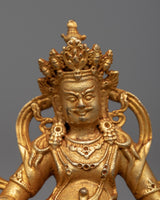 The statue represents Dzambhala's blessings, bringing wealth and success into the lives of his followers. Even though it is little in size, it is a potent reminder of the spiritual route to prosperity and the value of developing compassion and kindness. This statue exudes a sense of spiritual grace and wealth, enhancing the surroundings with its divine presence whether it is positioned on an altar or as the main focal point in a holy space.