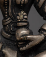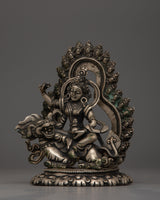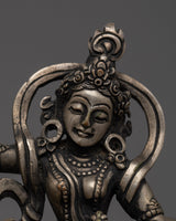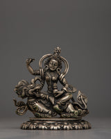 The Tsheringma Statue is a representation of the Himalayan protector deity, carved from copper and finished in silver plating. This sculpted artwork, standing 6.1"/15.5cm tall with a base measuring 4.7"/12cm and weighing 0.99 kilograms, evokes the idea of serenity and spiritual protection. Its tiny yet exquisite design makes it ideal for personal altars or meditation spaces.