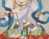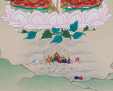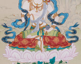 Hand-painted with meticulous attention to detail, the Thangka displays accurate iconography, capturing the essence of Vajrasattva’s spiritual significance. The use of natural colors, complemented by striking 24K gold accents, enhances the Thangka’s luminous and sacred appearance.