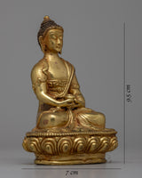 Because of the superb craftsmanship, this statue is both a work of art and a spiritual symbol, perfectly capturing the serene grace of Amitabha Buddha. The Buddha's features and robes are accentuated with a layer of elegance and reverence thanks to the 24k gold plating. The statue is made to be both aesthetically pleasing and have spiritual significance thanks to this painstaking process.
