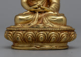 Presenting our Spiritual Amitabha Buddha Statue, a painstakingly crafted 9.5cm tall sculpture. This statue was made with a copper body and then exquisitely plated in 24k gold to heighten its hallowed presence. Amitabha Buddha is portrayed with a calm and introspective expression. In Buddhist traditions, he is associated with compassion and longevity.