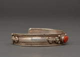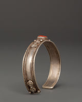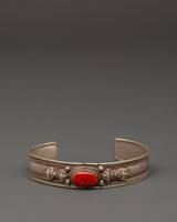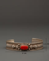 Elevate your Spiritual Bracelet with Red Turquoise Stone, a stunning piece of ethnic jewelry created in the Himalayas. This bracelet, with an oval red turquoise stone set in delicate silverwork, embodies traditional Tibetan style while presenting cultural depth and spiritual force. This bracelet is ideal for people looking for aesthetic beauty and spiritual positive aspects, serving as a protective talisman and an elegant fashion statement.