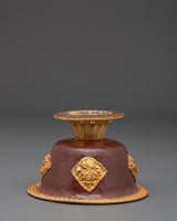 Discover the elegance and spiritual significance of this handcrafted Spiritual Offering Bowl, created to complement your Buddhist practices. Made of copper, the bowl has gold-coated borders and a deep acrylic color finish that represents purity and reverence. It stands 7 cm tall and has a diameter of 10.5 cm, making it an ideal vessel for holding sacred offerings such as water, rice, flowers, or incense during ceremonies. The 6.5 cm base provides stability, and the 4.5 cm inner depth makes the bowl suitable for a range of ceremonial items.