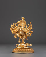 The statue features intricate detailing, highlighting Ganesha’s serene expression, sacred ornaments, and symbolic posture. The gold plating enhances the spiritual presence of the figure, while the copper body ensures authenticity. In Hindu tradition, Lord Ganesha is worshipped as the remover of obstacles and the patron of intellect and success, making this statue both a powerful spiritual artifact and a striking piece of art.