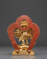 This Spiritual Ganesh Figure is a beautifully handcrafted statue made from copper with a radiant gold-plated finish. Measuring 18cm in height and 14.5cm in width, and weighing 0.82kg, this sacred idol of Lord Ganesha is an auspicious symbol of wisdom, prosperity, and new beginnings. Perfect for home altars, puja rituals, meditation spaces, or as a meaningful gift, it brings positive energy and divine blessings into any environment.