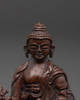 This Medicine Buddha statue, created with meticulous attention to detail, adds a sense of calm and inner serenity to any space. The Buddha of Healing's energy is enhanced by the corroded copper body, which provides an archaic appearance. This Buddhist Healing Art provides a sense of comfort and safety by evoking the Medicine Buddha's ancient healing powers through its peaceful and compassionate presence. Whether you want to strengthen your connection with Tibetan Buddhism or simply add a meaningful ornamental item to your house, this statue will serve as a constant reminder of the power of spiritual healing and balance.