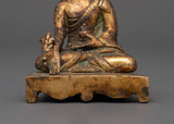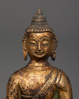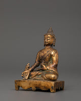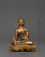 Spiritual Medicine Buddha Statue is a magnificent item made of copper and gold-plated with an antique finish. This superb Buddha sculpture, measuring 9.5 cm in height and 7.5 cm in width, is an ideal addition to any spiritual or wellness-themed area. The Medicine Buddha, recognized for his healing abilities, symbolizes health, prosperity, and peace. This well-crafted statue exudes positive energy, making it an excellent gift for anyone looking to improve their meditation practice or bring serenity and healing into their homes or offices. Its intricate features and vivid gold accents create a peaceful and uplifting atmosphere, ideal for anybody on a path of self-care and spiritual growth.
