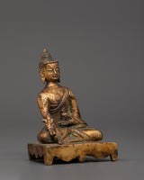 This copper Buddha sculpture represents well-being and wealth and gives an air of refinement to any setting. Its antique finish lends it a vintage appearance, making it an original and memorable gift for loved ones or a considerate addition to your collection. Whether placed in your living room, meditation area, or office, this spiritual Buddha statue brings healing energy, inner calm, and wealth. This gorgeous, handcrafted statue will enhance your atmosphere and link you with the tranquil aura of the Healing Medicine Buddha.