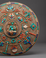 This spiritual wall art, created to encourage peace and strengthen your meditation practice, mixes traditional symbols with refined craftsmanship. Lapis lazuli is renowned for promoting self-awareness and mental clarity, whilst turquoise is valued for its healing and protective properties. Coral offers vivid energy, representing life force and rejuvenation. Together, these stones create a serene aura in your home, elevating this wall hanging beyond mere decor to a sacred instrument for spiritual growth and mindfulness. The combination of metals and the vibrant colors of the stones produces a stunning contrast that boosts the aesthetics of any space.