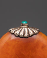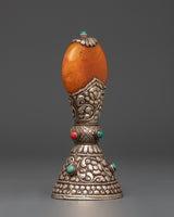 This Spiritual Stamp measures 16.5cm in height and 7cm in width, adorned with artificial, turquoise, and coral stones. Designed as a spiritual artifact, it adds a touch of cultural significance and artistry to any collection or sacred space. With a white metal base, the colorful stones enhance its visual appeal, making it a unique and meaningful piece.