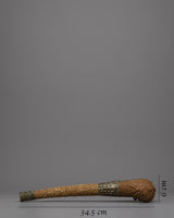 Elevate your practice of Buddhism with this genuine Tibetan Kangling, which is skillfully made of white metal and ethically sourced bone. This ceremonial instrument, which is 6 cm tall by 34.5 cm wide and weighs 0.430 kg, is a beautiful example of both great craftsmanship and history.