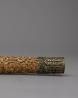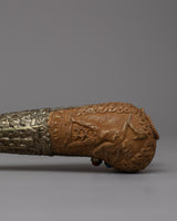 This Kangling, intended for ceremonial use, is not merely a tool; rather, it is a profound representation of inner depth and cultural history. In addition to ensuring quality of life, the combination of white metal and bone elevates its distinctive, sacred appearance. This Tibetan Kangling is ideal for both collectors and practitioners as it adds authenticity and a feeling of reverence to your rituals. Don't pass up the chance to get this magnificent item, which is a genuine example of Tibetan spiritual workmanship.