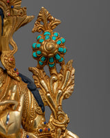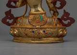 Sri White Tara Statue | Hand-Carved Gemstone, 24K Gold Gilded