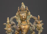 Enhance your meditation space or altar with this exquisite Standing Bodhisattva Statue, skillfully handcrafted from oxidized copper and adorned with a stunning gold-plated finish. Standing tall at 23cm, this statue captures the serene and compassionate presence of a Bodhisattva, symbolizing wisdom and the path to enlightenment. Its intricate detailing and rich design not only make it a visually striking piece but also a meaningful spiritual artifact. Perfect for those seeking spiritual growth and inner peace, this statue brings a calming energy to any sacred space, encouraging mindfulness and reflection every day.