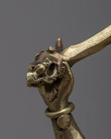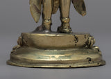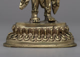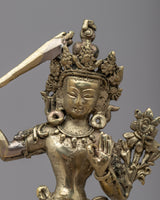 Behold the exquisite Standing Manjushri Statue, a masterpiece handcrafted with utmost skill and devotion on a brass body. The deity, Manjushri, is portrayed in a captivating pose, standing gracefully upon a delicate lotus base. With eyes filled with wisdom and compassion, Manjushri holds the symbolic flaming sword of knowledge, illuminating the path to enlightenment. Every intricate detail of this statue is meticulously sculpted, showcasing the artisan's dedication and craftsmanship. Let the presence of Manjushri inspire and guide you on your spiritual journey, as you embrace the wisdom and insight that this revered deity represents.