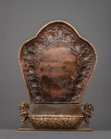 Behold the divine artistry of our Standing Tantric Guru Rinpoche Statue, which has been masterfully crafted to perfection. With its 24K gold gilding and copper construction, this statue exudes a sense of spiritual elegance and grandeur. The minute details, which are accentuated by acrylic paints, demonstrate our artists' skill and dedication. Guru Rinpoche's compassion and ageless wisdom are reflected in every brushstroke and intricate craftsmanship. The statue's celestial attractiveness is enhanced by its finely carved halo and delicately created throne, which is embellished with four snow lions, which are symbolic of auspiciousness.s