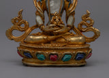 The Statue of Bodhisattva Set represents a deep spiritual tradition by combining revered characters from Tibetan Buddhism in a stunning ensemble. Each statue is delicately handcrafted on copper bodies and crystal stone, ensuring authenticity and reverence in every element of its construction. The electro-gold plating gives a bright touch, boosting the aesthetic appeal while representing the divine illumination and enlightenment connected with these spiritual creatures.