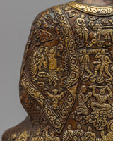 Our brass Buddha Shakyamuni statue is a truly unique and inspiring piece, depicting the Buddha in the earth-touching mudra, sitting in peaceful meditation. The elaborate carving of his life events on the robe adds depth and significance to an already beautiful work, providing a strong reminder of the Buddha's teachings and the value of mindfulness, compassion, and inner calm. This statue is likely to captivate your heart and encourage you towards a more peaceful and thoughtful existence, whether you are a Buddhist practitioner or simply someone who likes beautiful and inspirational art. Add this magnificent work of art to your collection to instil peace and tranquillity in your home or the workplace.