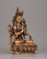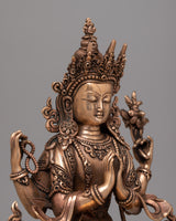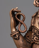 In the Buddhist tradition, the Statue of Chenrezig, also called Avalokiteshvara, is revered as a source of kindness and knowledge. This statue is carefully handcrafted on a copper body, a material selected for its durability and spiritual importance, with regard and attention to detail. The 24cm-tall monument, which personifies Chenrezig's divine attributes, invites followers to engage with the infinite wisdom and compassion he stands for.