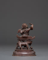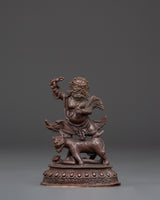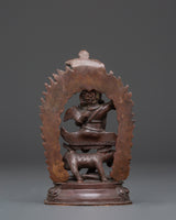 Dorje Drollo is respected in Tibetan Buddhism for subduing evil spirits and removing inner and exterior impediments. His wrathful yet compassionate spirit represents the brave power of enlightenment, defending the Dharma and all who follow it. Riding a tigress, he represents mastery over primal energy, and his raised hand and ritual instruments highlight his function as a powerful guardian who tames unruly elements. The oxidized copper finish accentuates the statue's antique appearance, adding depth and authenticity.