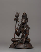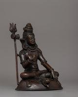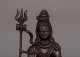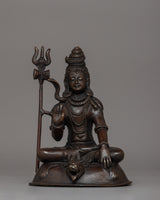Lord Shiva's statue is a stunning illustration of cosmic harmony and heavenly power. This statue, which is made of oxidized copper and was expertly crafted, embodies the Hindu deity's ageless spirit. With its elaborate detailing and commanding presence, this 19.5-cm tall sculpture captures the eye and represents the eternal essence of life as well as the transcendence of earthly bonds.