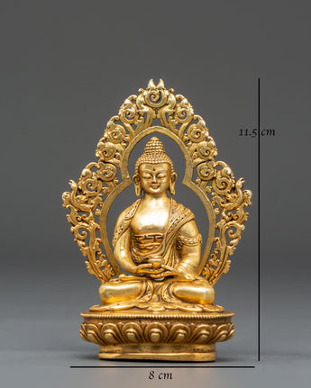 The Pure Land Buddha Amitabha Statue is a stunning representation of Amitabha Buddha, the central figure in Pure Land Buddhism. Standing at 11.5cm in height and 8cm in width, this statue weighs 0.29kg, making it a compact yet powerful addition to any sacred space. Crafted from copper and adorned with a gold-plated finish, this statue embodies the serene compassion and wisdom of Amitabha, making it a perfect centerpiece for your altar or meditation area. Its graceful design invites peace and spiritual reflection, allowing for a deeper connection to the teachings of Amitabha Buddha.
