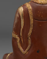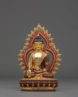 The exquisite gold-plated copper body and gemstones surrounding the halo enhance the symbolism of Ratnasambhava's qualities—the golden color represents the purity of wisdom. At the same time, the ornate embellishments and gems signify the blessings he bestows upon his followers. This Buddha statue is an excellent centerpiece for meditation rooms, shrines, and spiritual spaces, reminding practitioners of the values of compassion, kindness, and wisdom.