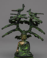 Our Shakyamuni Buddha Statue is a stunning work of art that has been expertly crafted from brass and is decorated with delicate acrylic paintings. Shakyamuni Buddha is depicted in this magnificent statue sitting beneath the Bodhi tree, signifying his profound enlightenment.