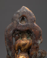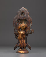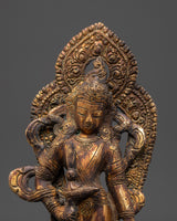Meticulously handcrafted with exquisite detail, this Statue of Standing Lokeshwor captures the serene facial expression, flowing robes, and symbolic ornaments that embody purity, wisdom, and compassion. Crafted from copper with an antique finish, it reflects the rich artistic heritage of Himalayan craftsmanship, blending devotional significance with stunning artistry. This statue serves as a powerful focal point for personal worship, meditation, or altar decor, inviting tranquility and spiritual clarity into your space. Whether as a cherished spiritual gift or a meaningful addition to your sacred environment, it radiates peace, blessings, and profound inspiration.