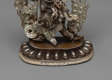 Vajrapani is regarded as a protector of the Buddha's teachings and is frequently seen brandishing a vajra. She symbolizes the thunderbolt of enlightenment. This statue can be a potent reminder of inner strength and resilience at your home altar or in your meditation room. Accept the energy of Vajrapani and discover your own inner strength with this magnificent silver statue. It is a classic representation of spiritual strength.