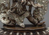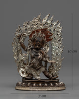 Introducing the Statue of Vajrapani, a Tibetan Buddhist emblem of power and strength. Measuring 10 centimeters in height, this well-sculpted statue is machine-made with an oxidized copper body for authenticity and longevity. The electro-silver plating enhances Vajrapani's spiritual presence by adding a dazzling gloss to the delicate features of its form.