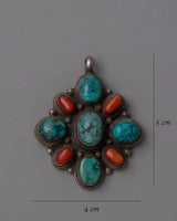 Experience the charm of this finely crafted Sterling Silver Locket Charm, composed entirely of silver. This gorgeous item has real turquoise and masterfully inlaid artificial coral stones that are thoughtfully positioned to produce a pleasing harmony of hues and textures.