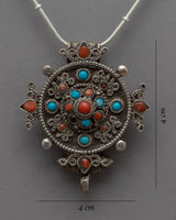 The captivating turquoise and coral stones set into the design of this locket are what really make it stand out. Turquoise, which is valued for its calming and safeguarding qualities, gives your presence a peaceful aura. While coral is prized for its vigor and passion, this locket also serves as a fashion statement and a representation of your inner vitality and strength.