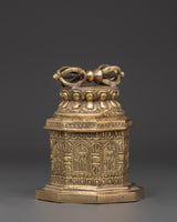 Meticulously handcrafted from brass and weighing 1.54kg, this artifact radiates a spiritual authenticity. Every curve and detail of this stupa is made with devotion and reverence, reflecting centuries-old Tibetan artistry. Whether used for prayer, meditation, or as a decorative relic, this piece invites harmony and mindfulness into any setting. An essential addition for collectors of Buddhist artifacts or anyone seeking spiritual balance in their living space.